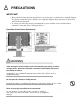 product. The backlight of the LCD panel has a fixed life span. When the screen becomes dark or begins to flicker, please contact your dealer. Do not press on the panel or edge of the frame strongly, as this may result in damage to the screen. There will be prints left on the screen if the pressed image is dark or black. If pressure is repeatedly applied to the screen, it may deteriorate or damage your LCD panel. Leave the screen white to decrease the prints.