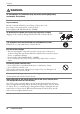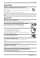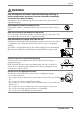 English WARNING Do not touch a damaged LCD panel directly with bare hands. The liquid crystal that may leak from the panel is poisonous if it enters the eyes or mouth. If any part of the skin or body comes in direct contact with the panel, please wash thoroughly. If some physical symptoms result, please consult your doctor. Lamps contain mercury, dispose according to local, state or federal laws. CAUTION Handle with care when carrying the unit. Disconnect the power cord and cables when moving the unit.