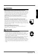 WARNING ENGLISH ´ Keep small objects away from the monitor. Small objects may accidentally fall through the ventilation slots into the cabinet, leading to fire, shock, or equipment damage. ´ Keep liquids away from the monitor. Spillage into the cabinet may result in fire, electric shock, or equipment damage. If an object or liquid falls/spills into the cabinet, unplug the monitor immediately. Have the monitor checked by a qualified service engineer before using it again.