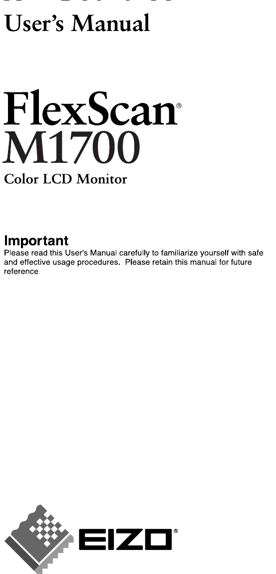 For U.S.A, Canada, etc. (rated 100-120 Vac) Only FCC Declaration of Conformity We, the Responsible Party EIZO NANAO TECHNOLOGIES INC. 5710 Warland Drive, Cypress, CA 90630 Phone: (562) 431-5011 declare that the product Trade name: EIZO Model: FlexScan M1700 is in conformity with Part 15 of the FCC Rules.
