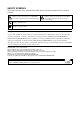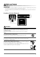 WARNING Handle the power cord with care. • Do not place the cord underneath the unit or other heavy objects. • Do not pull on or tie the cord. If the power cord becomes damaged, stop using it. Use of a damaged cord may result in fire or electric shock. Never touch the plug and power cord if it begins to thunder. Touching them may result in electric shock. When attaching an arm stand, please refer to the user’s manual of the arm stand and install the unit securely with the enclosed screws.