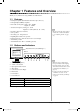 Chapter 1 Features and Overview Thank you very much for choosing an EIZO color LCD monitor. 1-1 Features • Dual-input compliant (DVI-D and D-sub mini 15-pin connectors) • DVI digital input (TMDS) compliant • Horizontal scan frequency: Analog: 24.