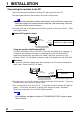 1 INSTALLATION Connecting the monitor to the PC 1) Be sure that the power switches of both the PC and the monitor are OFF. 2) Plug the signal cable into the connector at the rear of the monitor. • When connecting the signal cable or cable adapter, first check that the shape at the cable side matches the shape at the connecting side. After connecting, secure the connection with the screw-in fasteners. 3) Plug the other end of the cable into the video connector on the rear of the PC.