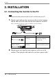English 2. INSTALLATION 2-1. Connecting the monitor to the PC NOTE • Be sure that the power switches of both of the PC and the monitor are OFF. 1. Plug the signal cable into the connector at the rear of the monitor and the other end of the cable into the video connector on the PC. After connecting, secure the connection with the screw-in fasteners. Signal Cable 2.