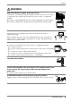 English WARNING The equipment must be connected to a grounded main outlet. Not doing so may result in fire or electric shock. Use the correct voltage. * The unit is designed for use with a specific voltage only. Connection to another voltage than specified in this User’s Manual may result in fire, electric shock, or equipment damage. * Do not overload your power circuit, as this may result in fire or electric shock. Handle the power cord with care.