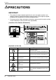 English PRECAUTIONS IMPORTANT! • This product has been adjusted specifically for use in the region to which it was originally shipped. If operated outside the region to which it was originally shipped, the product may not perform as stated in the specifications. • To ensure personal safety and proper maintenance, please read this section and the caution statements on the unit (refer to the figure below).