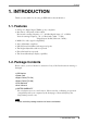 English TABLE OF CONTENTS PRECAUTIONS.................................................................................... 4 1. INTRODUCTION ..................................................................................... 9 1-1. Features....................................................................................................... 9 1-2. Package Contents ........................................................................................ 9 1-3. Controls & Connectors ........................