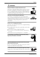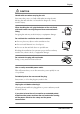 English CAUTION Handle with care when carrying the unit. Disconnect the power cord and cables when moving the unit. Moving the unit with the cord attached is dangerous. It may result in injury. When handling the unit, grip the bottom of the unit firmly with both hands ensuring the panel faces outward before lifting. OK Dropping the unit may result in injury or equipment damage. Do not block the ventilation slots on the cabinet. z Do not place any objects on the ventilation slots.
