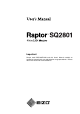1 Overview The TFT Monitor Raptor SQ2801 was developed to meet the very demanding requirements in the Air Traffic Management where system availability and reliability is crucial. Ergonomic criteria have been addressed to ensure high acceptance from the operators. Reduced depth and lower weight compared to CRT monitors allow easy installation into workstation consoles of air traffic control rooms. Considerably lower power consumption and heat emissions are some of the other advantages over CRT based units.
