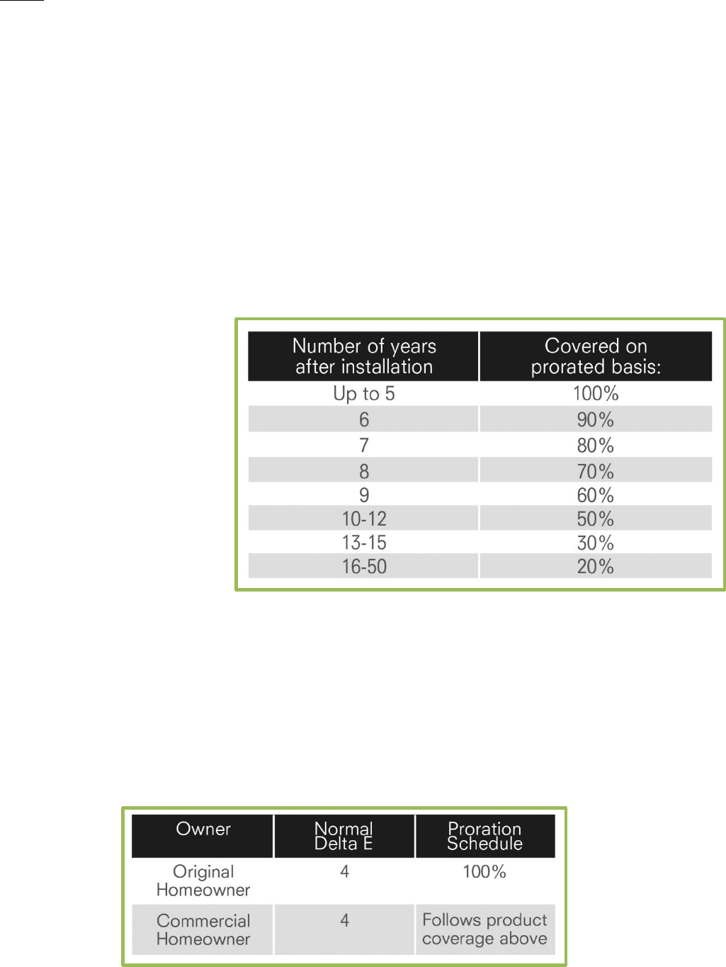 The term of the Commercial Owner’s warranty is 50 years, prorated below. If Ekena determines that its product(s)