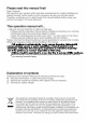 TABLE OF CONTENTS 1 Your Washing Machine 4 Overview Specifications 4 5 2 Warnings 6 General Safety First Use Intended use Safety instructions If there are children in your house... 6 6 6 7 7 3 Installation 8 Removing packaging reinforcement 8 Opening the transportation locks 8 Appropriate installation location 8 Adjusting the feet 8 Connecting to the water supply.