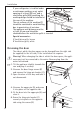 Installation 7. Unscrew the handle. Refit it on the opposite side after having pushed in the plugs with a punch. Cover the holes left open with the plugs contained in the documentation pack. Changing over the freezer compartment door 180° Plug socket The plug socket necessary for connection of your appliance to the electricity supply should be positioned so that it is possible to pull out the appliance plug.