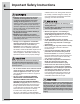 Important Safety Instructions • Stepping, leaning or sitting on the door or drawer of this appliance can result in serious injuries and may also cause damage to the appliance. Do not allow children to climb or play around the appliance. The weight of a child on an open door may cause the appliance to tip, resulting in serious burns or other injury. An open drawer, when hot, may cause burns. • Do not use the oven or warmer drawer (if equipped) for storage.