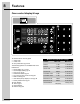 Features Oven control display & keys 16 18 13 15 14 17 13. Perfect-Pair™ oven key pads • Upper oven • Lower oven Feature 14. User preferences -pg 43-48 Timer 1 1 min 11 hr 59 min The following options are available under User Preferences: • Clock setting -pg 11 & 43 • Clock display setting -pg 43 • 12 hr/ 24 hr -pg 44 • Fahrenheit/ Celsius -pg 44 • 12 Hr energy save mode on/off p - g 45 • Audio mode -pg 45 • UPO offset (temp. adjust) or reset -pg 46 • Factory default reset -pg 47 15.