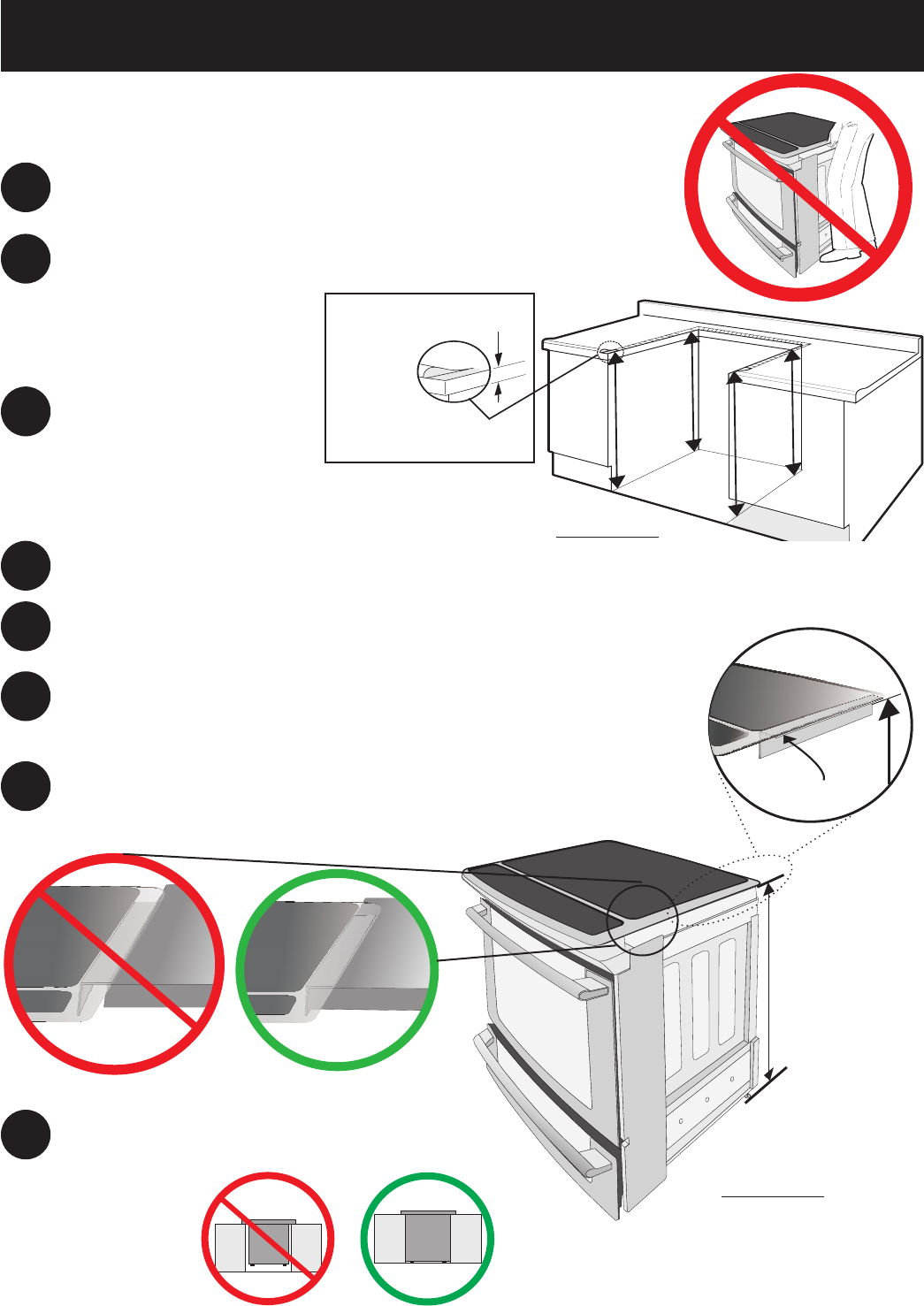 La table de cuisson ne doit PAS toucher directement le comptoir (voir