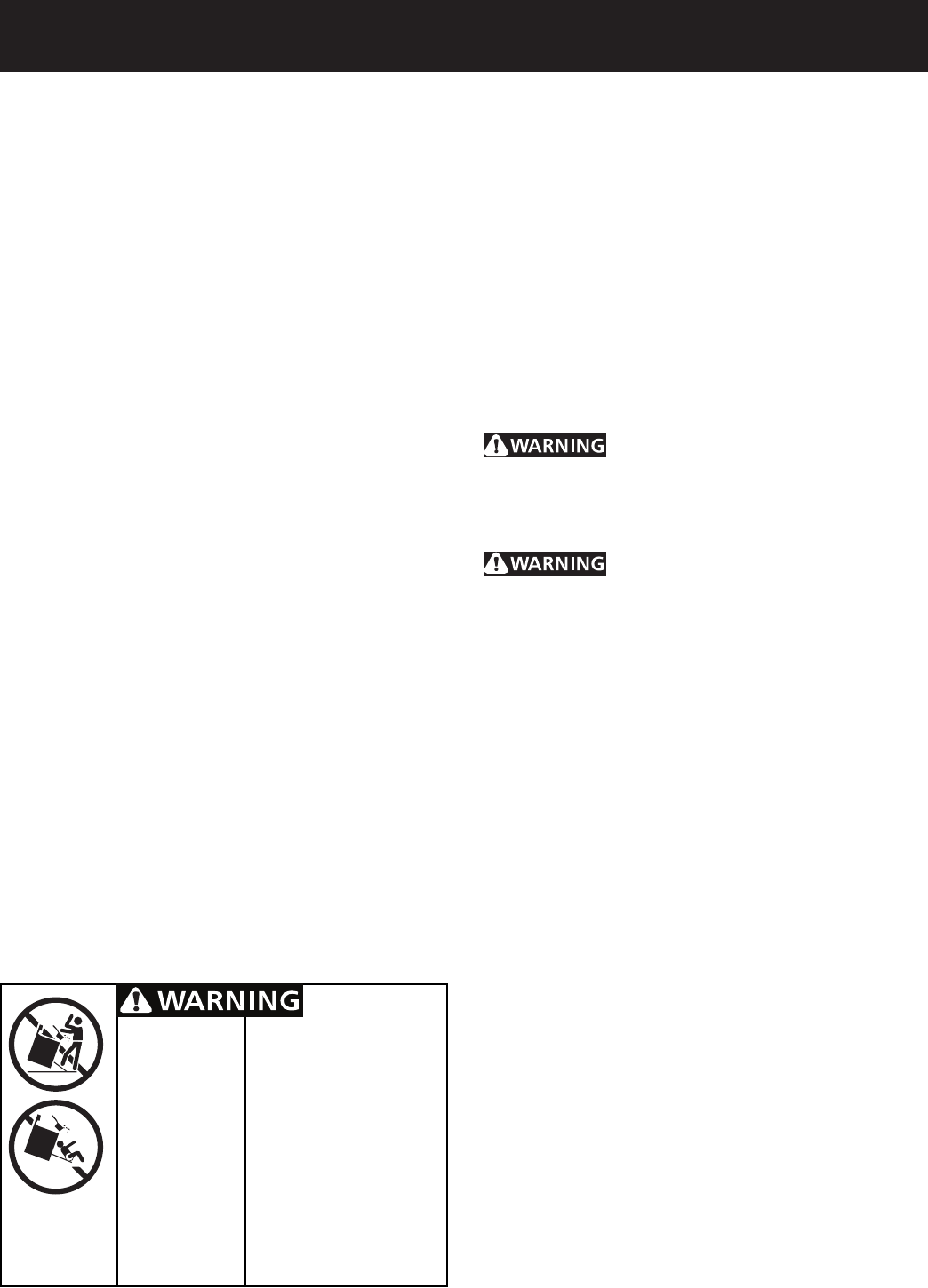 •Do not store or use gasoline or other flammable