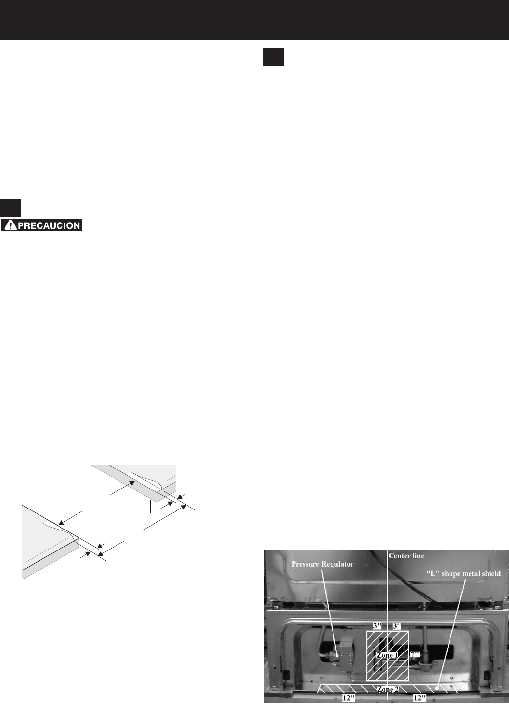espacio para la linea de gas esta dentro de 1" (2.5 cm) y