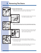 Removing The Doors To remove the top hinge cover: 1 Remove the three screws from the cover over the top door hinges. 2 Pull the cover forward about a half-inch and lift it off. To remove the refrigerator door: 1 Trace lightly around the door’s top hinge with a pencil. This makes reinstallation easier. 2 Remove the two screws from the top hinge. Lift the door off of the bottom hinge and and set it aside. 3 Remove the three bottom hinge screws and hinge if necessary.