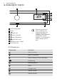 www.electrolux.com 4. KEZELŐPANEL 1 2 3 4 5 6 8 7 1 Programválasztó 2 Kijelző 3 Idő érintőgomb 4 Késleltetés érintőgomb 5 Kímélő érintőgomb 6 Wool Load érintőgomb Érintse meg ujjával a kiegészítő funkció nevét vagy szimbólumát viselő érintőgombokat. Ne viseljen a kezelőpanel megérintésekor kesztyűt. Fontos, hogy a kezelőpanel mindig tiszta és száraz legyen. 7 Start / Szünet érintőgomb 8 Be/Ki gomb 4.