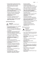 www.electrolux.com • • • • Fetter och olja kan frigöra lättantändliga ångor när de värms upp. Håll flammor eller uppvärmda föremål borta från fetter och oljor när du lagar mat med dem. Ångorna som frigörs i mycket het olja kan orsaka självantändning. Redan använd olja, som kan innehålla matrester, kan orsaka brand vi lägre temperatur än olja som används för första gången. Placera inga lättantändliga produkter eller föremål som är fuktiga med lättantändliga produkter i, nära eller på tvättmaskinen.