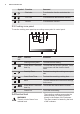 www.electrolux.com Symbol Function Comment Reminder To activate the function and show the time. 8 Pro Cook To activate and deactivate the function. 9 PAUSE To activate the function. 7 3.3 Cooking zone panel To see the cooking zone panel tap a cooking zone symbol in control panel. 1 2 3 9 03:00 4 5 00:10 01:45 7 1 Sym‐ bol Function Comment - Cooking zone symbol To show the heat setting. Power Boost / Automatic To show that the function operates.