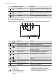 www.electrolux.com Symbol Funksjon Beskrivelse 8 Pro Cook Aktiverer og deaktiverer funksjonen. 9 PAUSE Aktivere funksjonen. 3.3 Kokesonepanel Trykk på et kokesonesymbolet i betjeningspanelet for å se kokesonepanelet. 1 2 3 9 03:00 4 5 00:10 01:45 7 6 Sym‐ bol Funksjon Beskrivelse – Kokesonesymbol For å vise effekttrinnet. 2 Booster / Automatisk oppvarming Viser at funksjonen er i bruk. Tidsuret tell‐ er ned tiden til funksjonen deaktiveres.