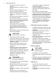 www.electrolux.com • • • • • • • • Po každom použití varnú zónu vypnite. Nespoliehajte sa na detektor varnej nádoby. Na varné zóny neklaďte príbor ani pokrievky. Môžu sa zohriať. Spotrebič nepoužívajte, keď máte mokré ruky, ani keď je v kontakte s vodou. Spotrebič nepoužívajte ako pracovný ani odkladací povrch. Ak je povrch spotrebiča popraskaný, ihneď odpojte spotrebič z elektrickej siete. Predídete tak zásahu elektrickým prúdom.