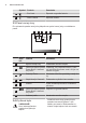 www.electrolux.com Problém Možné príčiny Riešenie Je zapnutá jedna z funkcií zablokovania. Na odblokovanie varného panela sa dotknite písmen v abecednom poradí A - O - X. Funkcia Pro Cook sa vypne. Používate viac ako jeden hrniec. Pre funkciu použite iba je‐ den hrniec. Jas displeja je znížený. Teplota zón je vysoká. Na zabezpečenie dlhej život‐ nosti displeja sa zníži jas v závislosti od teploty varné‐ ho panela. Varný panel nechajte vy‐ chladnúť. Rozsvieti sa symbol .