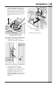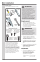 Installation Pour ajuster la butée de porte : La butée de porte s’ajuste entre 85 et 145 degrés. REMARQUE 5 6 Serrer de nouveau la vis. Assurez-vous que les butées de porte soient à l’emplacement désiré avant de reprendre le fonctionnement normal. Illustration avec vue à partir du bas de la porte du réfrigérateur. Butée de porte Charnière inférieure Revissez la vis Ouverture min. Vis Ouverture max.