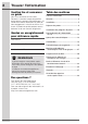 Trouver l'information Veuillez lire et conserver ce guide Nous vous remercions d'avoir choisi Electrolux, la nouvelle marque de première qualité pour les appareils électroménagers. Ce Guide d'utilisation et d'entretien fait partie de notre engagement à satisfaire le client et à lui fournir un produit de qualité pendant toute la durée de vie de son nouveau réfrigérateur. Gardez un enregistrement pour référence rapide Date d'achat Table des matières Trouver l'information..................................