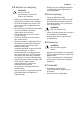 SVENSKA 2.4 Skötsel och rengöring VARNING! Det finns risk för personskador, brand eller skador på produkten. • • • • • • • • • Stäng av produkten före underhåll. Koppla bort produkten från eluttaget. Se till att produkten har svalnat. Det finns även risk för att glaspanelerna kan spricka. Byt omedelbart ut luckans glaspaneler om de är skadade. Kontakta auktoriserat servicecenter. Var försiktig när du tar bort luckan. Luckan är tung! Kvarblivet fett eller mat i produkten kan orsaka brand.