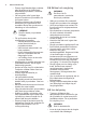 www.electrolux.com • • • • • • • • • • • • Försök aldrig att släcka en eld med vatten, men stäng av produkten och täck över flamman, t.ex. med ett lock eller brandfilt. Förvara inte saker på kokytorna. Använd inte ångrengörare vid rengöring av produkten. Metallföremål som knivar, gafflar, skedar och lock bör inte placeras på hällens yta eftersom de blir varma. Om glaskeramikytan / glasytan är sprucken, stäng av produkten för att undvika risken för elektriska stötar.