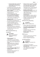 DANSK ADVARSEL! Glasskraberen skal opbevares utilgængeligt for børn. Brug glasskraberen forsigtigt, da bladet er meget skarpt. • 7.2 Rengøring af kogesektionen • Fjern straks: smeltet plast, plastfolie, sukker og mad med sukker. Ellers kan snavs forårsage skader på kogesektionen. Vær forsigtig for at undgå forbrændinger. Brug en • 13 specialskraber til kogesektioner på glasoverfladen, og bevæg bladet hen over overfladen.