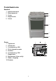 Produktbeskrivelse Komfuret 1 Induktionszonerne 2 Betjeningspanel 3 Ovnen 4 Magasinkuffe 5 Sokkel 1 2 3 4 5 Ovnen 1 Topelement 2 Grillelement 3 Ovnsbelysning, 40W 4 Stik til stegetermometer 5 Fedtfilter 6 Ovnsbelysning, 25W 7 Ringelement 8 Bundelement (ikke synligt) 9 Ribber, aftagelige 10 Niveauer 1 2 3 10 4 5 6 7 8 9 6