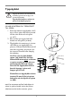 Tippskyddet Tippskyddet måste vara monterat, för att hindra spisen från att tippa vid onormal belastning. Tippskyddet fungerar endast när spisen är inskjuten på plats. SÅ HÄR MONTERAR DU TIPPSKYDDET TILL SPISEN: 1 Innan du monterar tippskyddet, skall du se till att spisen har blivit justerad till den rätta nivån och står plant (se sid 7). 2 Rita en linje på väggen från hällkanten ner mot golvet (SE BILD). 3 Tippskyddet ska monteras på vänster sida.