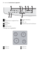 electrolux beskrivelse af apparatet 1 9 2 3 8 4 6 7 1 Lås 2 Kontrollamper for kogezone/Timerfunktion 3 Timerdisplay 4 Display 5 Valg af varmetrin 6 7 8 9 Booster (opkogning) Timer Stop + Go Tænd/slukknap med kontrollampe Oversigt over kogesektion 1 2 4 1 Ø 145 mm 2 Ø 180 mm 5 3 3 Ø 145 mm 4 Ø 210 mm