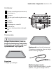 beskrivelse af apparatet electrolux 9 Ovntilbehør 1 2 3 4 5 6 7 8 9 10 Øverste varmelegeme (overvarme) Varmelegeme Ovnpære Tilslutning af madlavningstermometer Fedtfilter Ovnpære Varmelegemer, varmluft Undervarme Ovnens teleskopudtræk (udtagelige) Ovnriller 1 10 2 3 5 4 5 6 7 4 3 2 1 8 9 Tilbehørsdele Rengør tilbehørsdelene, inden de bruges for første gang. Vask plader, bradepande osv. i varmt vand med opvaskemiddel. Skyl og tør af.