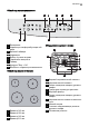 electrolux 5 Общий вид панели управления 1 9 2 8 3 4 5 6 7 1 Блокировка 2 Индикаторы конфорок/Функция тай‐ мера 3 Дисплей таймера 4 Индикация 5 Выбор ступени нагрева 6 Повышение мощности 7 Таймер 8 Функция "Stop + Go" 9 Вкл/Выкл с индикатором включения Оборудование духового шкафа 1 10 2 3 5 4 5 6 7 4 3 2 1 8 Общий вид варочной панели 9 1 2 4 1 2 3 4 Диаметр 145 мм Диаметр 180 мм Диаметр 145 мм Диаметр 210 мм 3 1 Верхний нагревательный элемент 2 Нагревательный элемент 3 Лампа освещ