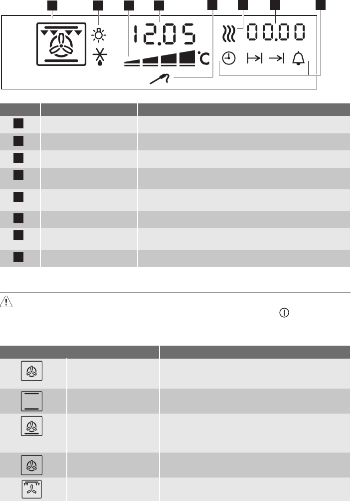 Ovnsfunksjonsindikator Viser ovnsfunksjonen.