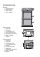 Produktbeskrivelse Komfuret 1 Induktionszonerne 2 Betjeningspanel 3 Ovnen, øverste 4 Ovnen, nederste 1 2 3 4 Ovnen (øverste) 1 Topelement 2 Grillelement 3 Ovnsbelysning, 40W 4 Stik til stegetermometer 5 Bundelement (ikke synligt) 6 Ribber, aftagelige 7 Niveauer 1 2 3 4 7 5 6 Ovnen (nederste) 1 Topelement 2 Grillelement 3 Ovnsbelysning, 40W 4 Stik til stegetermometer 5 Fedtfilter 6 Ovnsbelysning, 25W 7 Ringelement 8 Bundelement (ikke synligt) 9 Ribber, aftagelige 10 Niveauer 1 2 3 10 4 5 6 7 8 9