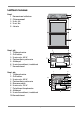 Laitteen kuvaus Liesi 1 2 3 4 5 1 2 Keraaminen keittotaso Ohjauspaneeli Uuni, ylä Uuni, ala Jalusta 3 4 1 Uuni, ylä 1 Ylälämpövastus 2 Grillivastus 3 Uunin valo, 40 W 4 Paistomittarin pistorasia 5 Alalämpö 6 Uunin kannattimet, irrotettavat 7 Kannatintasot 2 3 4 7 5 6 1 Uuni, ala 1 Ylälämpövastus 2 Grillivastus 3 Uunin valo, 40 W 4 Paistomittarin pistorasia 5 Rasvasuodatin 6 Uunin valo, 25 W 7 Puhaltimen lämpövastus 8 Alalämpö 9 Uunin kannattimet, irrotettavat 10 Kannatintasot 2 3 10 4 5 6 7 8 9