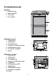 Produktbeskrivelse Komfyren 1 Keramisk topp 2 Berøringspanel 3 Ovn (øvre) 4 Ovn (nedre) 1 2 3 4 1 Stekeovnen (øvre) 1 Overelement 2 Grillelement 3 Ovnsbelysning 4 Kontakt for steketermometer 5 Underelement (skjult) 6 Ovnsstiger, uttagbare 7 Nivåer 2 3 4 7 5 6 Stekeovnen (nedre) 1 Overelement 2 Grillelement 3 Ovnsbelysning 4 Kontakt for steketermometer 5 Viftedeksel 6 Ovnsbelysning, 25W 7 Ringelement 8 Underelement (skjult) 9 Ovnsstiger, uttagbare 10 Nivåer 1 2 3 10 4 5 6 7 8 9 6