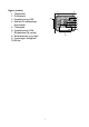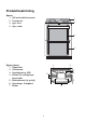 Produkt beskrivning Spisen 1 Häll med induktionszoner 2 Touchpanel 3 Ugn, övre 4 Ugn, undre 1 2 3 4 Ugnen (övre) 1 Takelement 2 Grillelement 3 Ugnsbelysning, 40W 4 Kontakt för matlagningstermometer 5 Bottenelement (ej synligt) 6 Ugnsstegar, löstagbara 7 Nivåer 1 2 3 4 7 5 6 6