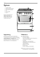 Innehåll Innehåll Säkerhet ...................................................... 3 Spisen ........................................................... 4 Uppackning ....................................... 4 Tillbehören ......................................... 4 Säkerhetsutrustningen .............................. 5 Tippskyddet ....................................... 5 Kastrullskyddet (extra tillbehör) ...... 5 Luckspärren ....................................... 6 Före första användning ....................