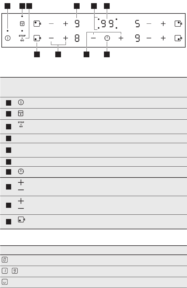 - Värmelägesdisplay För att visa det inställda värmeläget.