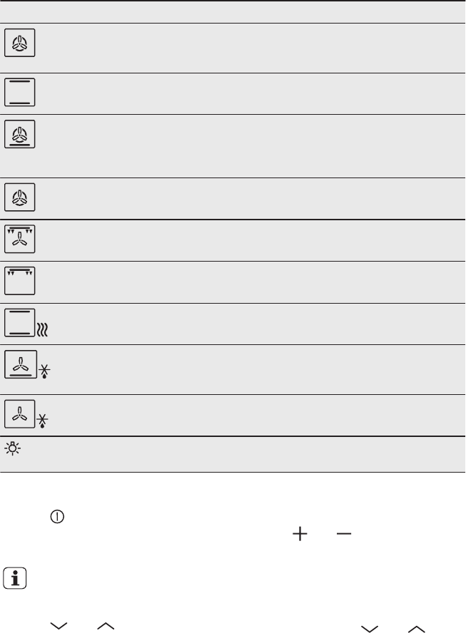 Ugnsbelysning För att aktivera lampan utan en tillagningsfunk‐