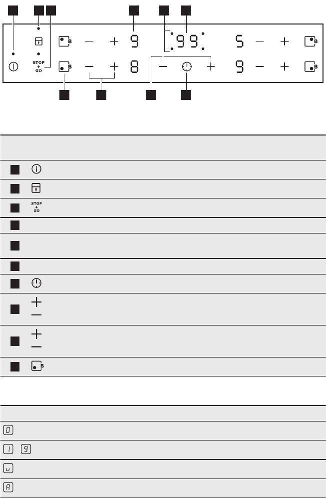 TÆND/SLUK Tænder/slukker for kogesektionen.