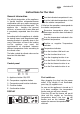 GB electrolux 7 Contents Instructions for the User Important safety information......................................................................5 Instructions for the User ............................................................................9 General information.................................................................................9 Use ......................................................................................................9 Control panel ...............................