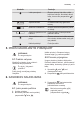 www.electrolux.com Jutiklio laukas - 6 7 Funkcija Pastaba Ekranas Rodo esamas prietaiso nuostatas. Mygtukas auk‐ štyn Naršyti aukštyn meniu. Mygtukas žemyn Naršyti žemyn meniu. 8 Laiko ir papildo‐ mos funkcijos Nustatomos skirtingos funkcijos. Veikiant kaiti‐ nimo funkcijai palieskite jutiklio lauką ir nustaty‐ kite laikmatį arba funkcijas: Mygtukų užraktas, Mėgstamiausi, Kaitinti+palaikyti, Set + Go. Taip pat galite pakeisti mėsos termometro nuosta‐ tas.