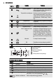 www.electrolux.com Jutiklio laukas Eil. Nr. 3 Funkcija Pastabos Grįžties mygtukas Grįžti į meniu vienu lygiu atgal. Norėdami atidaryti pagrindinį meniu, palieskite lau‐ ką ir palaikykite 3 sekundes. Temperatūros nustatymas Nustatoma prietaiso temperatūra arba ro‐ doma esama temperatūra. Jeigu norite suaktyvinti arba supasyvinti funkciją Grei‐ tasis įkaitinimas , lieskite lauką 3 sekun‐ des. 4 Mėgstamiausi 5 Mėgstamiausioms programoms išsaugoti ir pasirinkti.